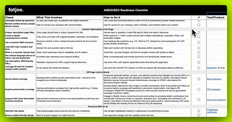 Use our AI SEO readiness checklist to make sure your site is winning in GEO.